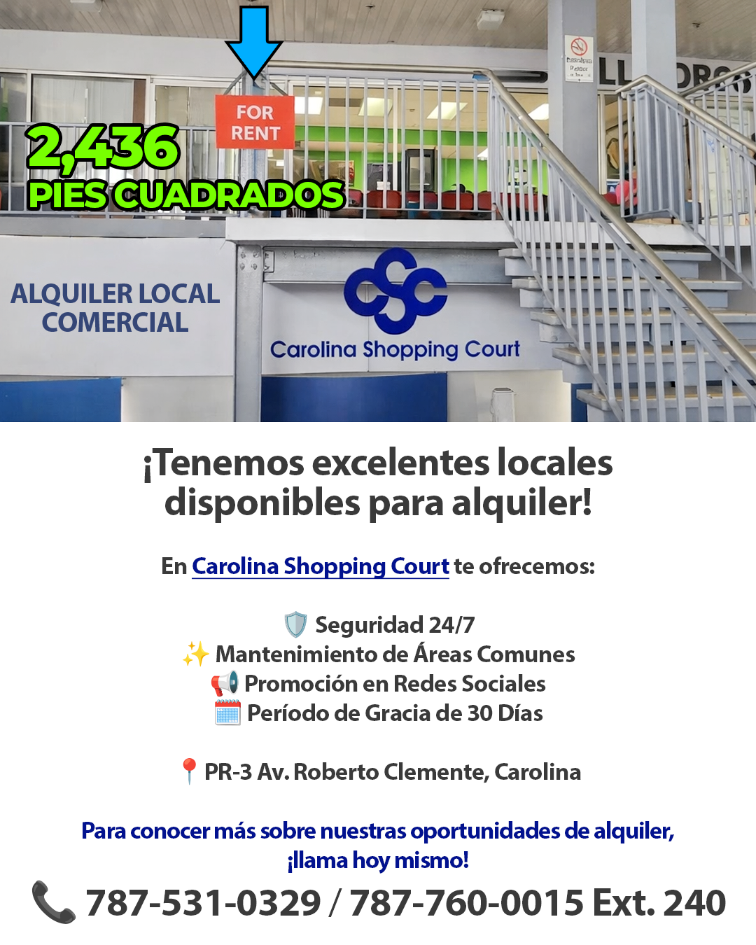 ๐จ Esta es tu oportunidad para tener ese local para tu negocio en la mejor รกrea y cรฉntrica en Carolina. Tenemos espacios disponibles en Carolina Shopping Court. Mira todo lo que ofrecemos: