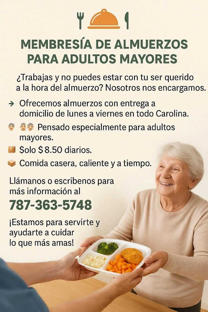 Ofrecemos almuerzos con entrega a domicilio de lunes a viernes en todo Carolina.