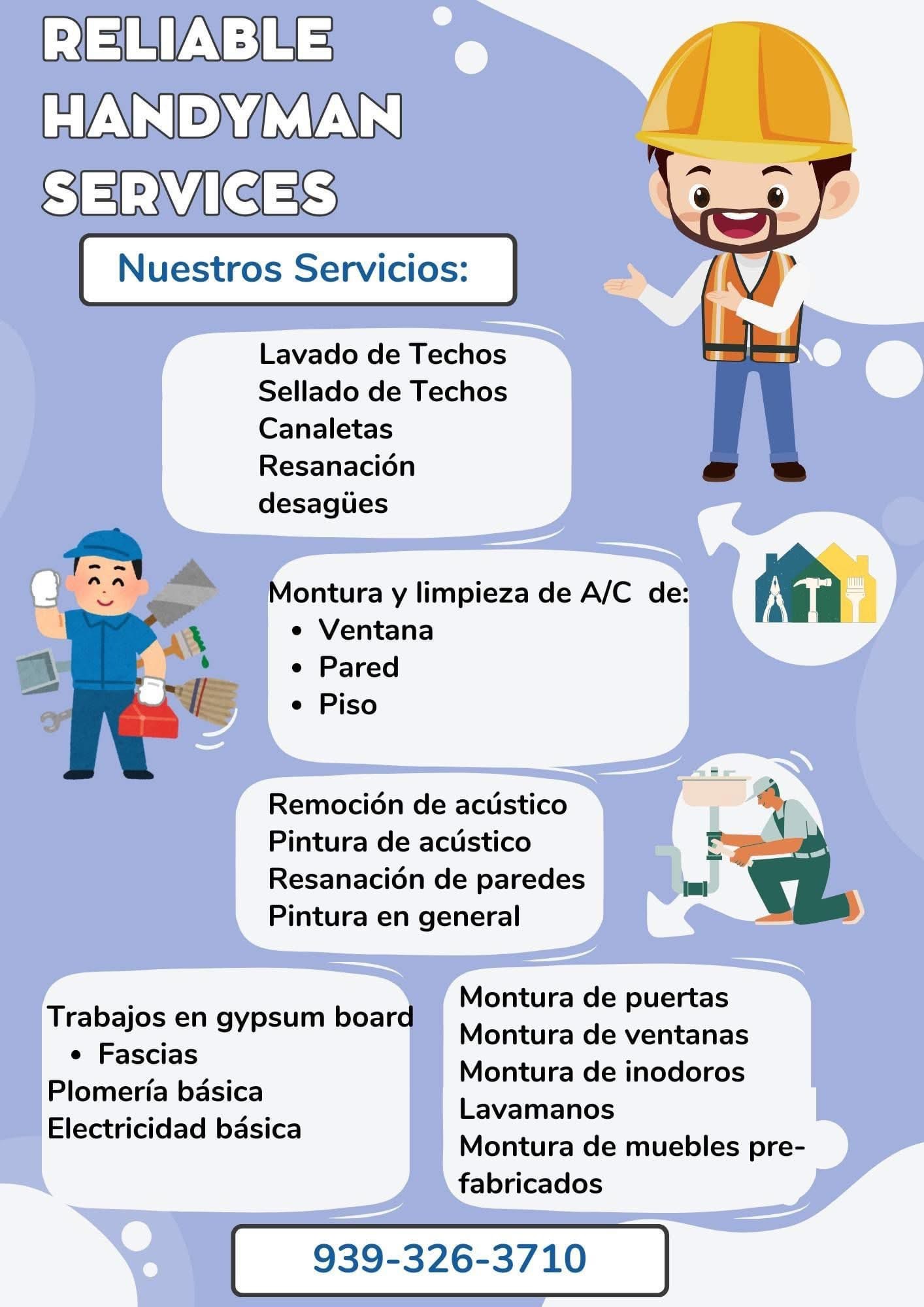 Ofrecemos: Lavado, sellado y mantenimiento de techos con hasta 10 años de garantía, pintura profesional interior y exterior, reparación, montura de juegos de baño, montura de muebles prefabricados.