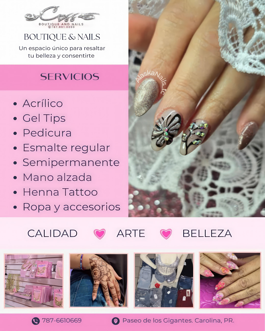 💅 ¡Renueva tu estilo desde las uñas hasta tu outfit! En Coss Boutique and nails encuentras todo lo que necesitas para destacar: uñas en acrílico, gel tips, pedicura, diseños a mano alzada, henna tattoos, ropa y accesorios de belleza.