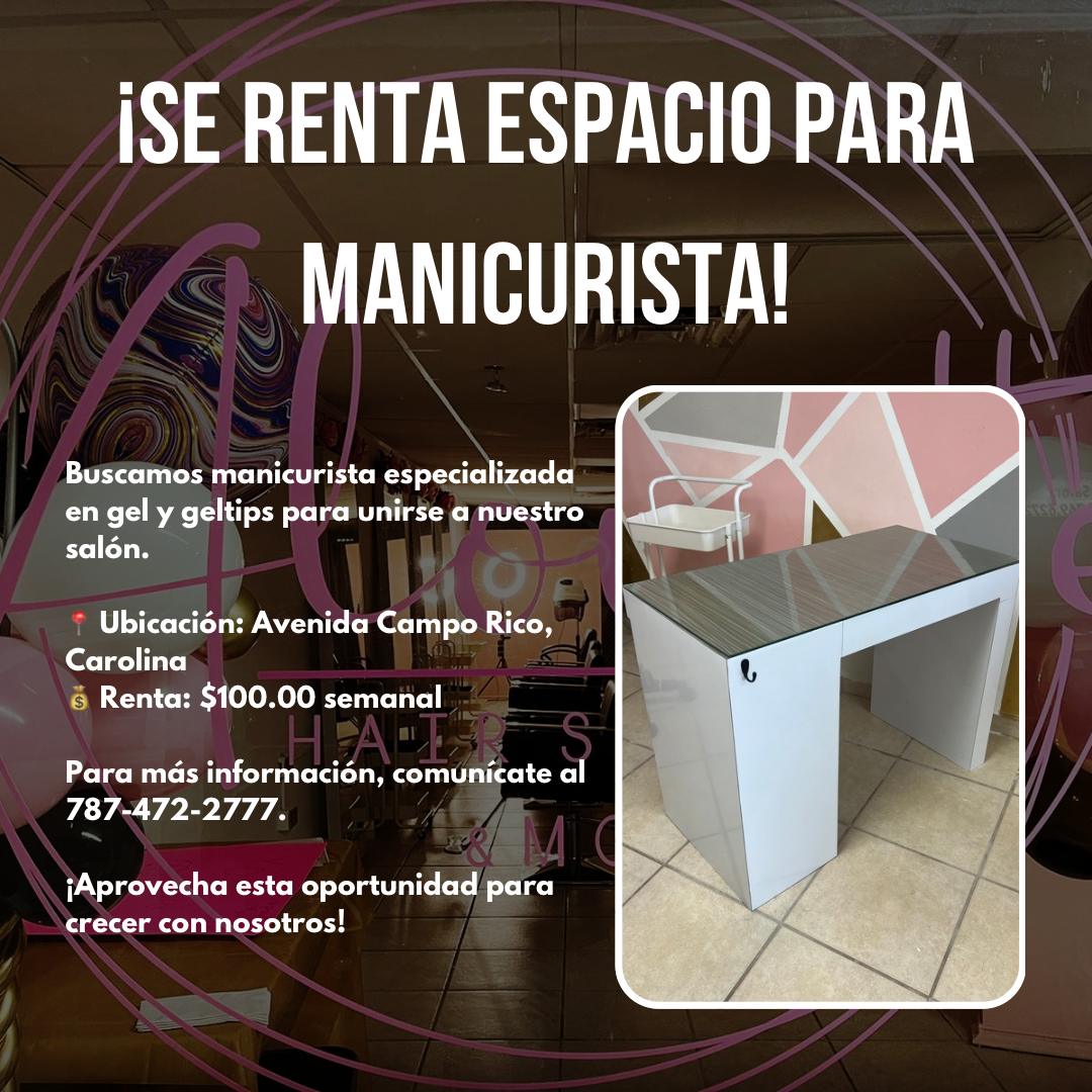 Renta de mesa para manicurista y silla para estilista.