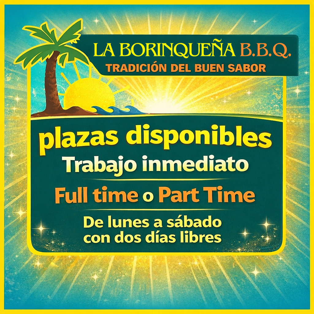 Si deseas ser parte de nuestra Familia De la Borinqueña BBQ de la Avenida Campo Rico en CAROLINA.