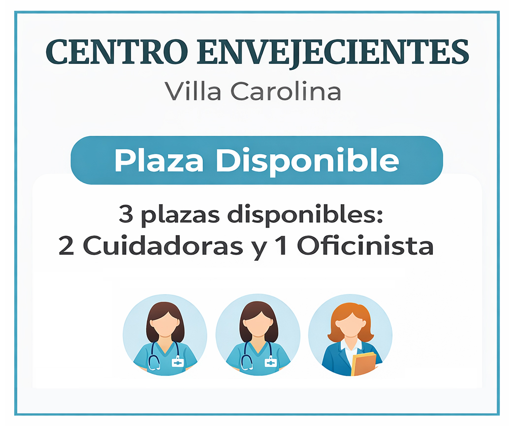 3 plazas: 2Cuidadoras y 1 Oficinista