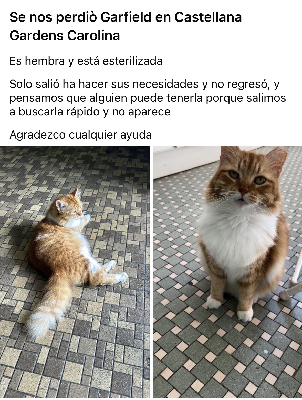 😿♀️ Gata perdida ♀️ en Castellana Gardens