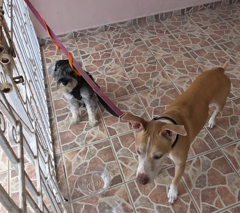 Se acaban de encontrar 30/dic/2025, 12:49pm. Andan unidos por leashes. No tienen chapa de ID.