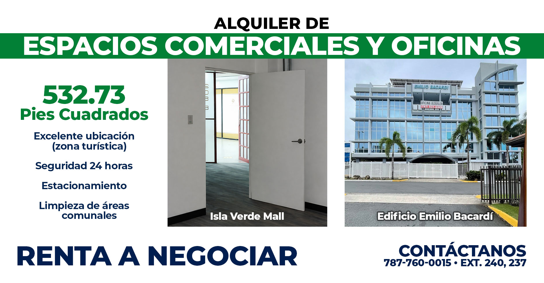 Te presentamos un excelente local comercial disponible en el Edificio Emilio Bacardí, ubicado en una zona estratégica Park Garden (SAN JUAN) con fácil acceso y gran visibilidad.