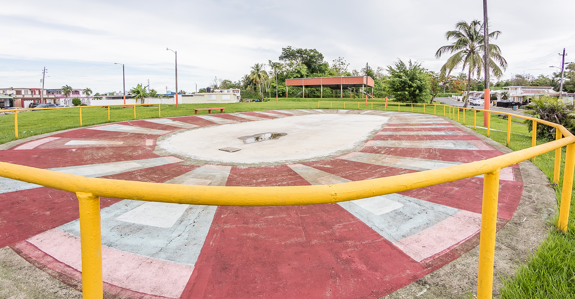 Este bonito parque cuenta con una cancha de baloncesto bajo techo, banquitos en diferentes áreas, columpios, una chorrera y 2 redondeles (uno de ellos para correr patines y otro posiblemente para caminar [este último tiene un hermoso arbolito en el centro que le añade un toque muy especial]).