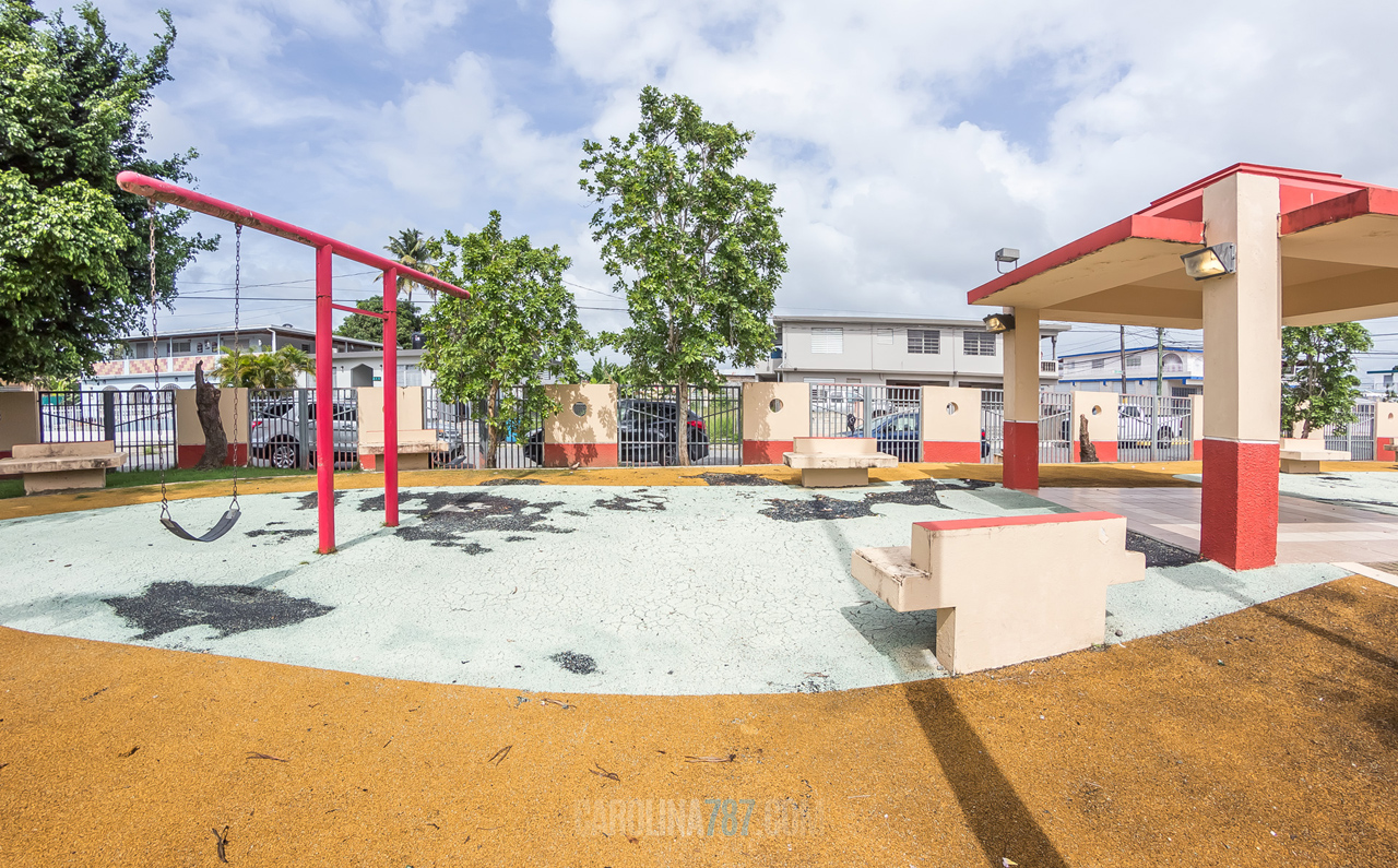 Para lo pequeño que es, siento que este parquecito tiene de todo. Cuenta con una cancha de baloncesto, área de juegos para niños con chorreras y columpios, un gazebo, varios banquitos, palmas y uno que otro arbolito que le añaden más vida y color al lugar.